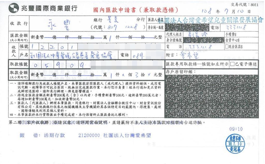 enlightened2018年11月核定扶助的台東卑南桐書屋鄭同學個案,長期扶助撥放生活扶助金為要,已於108年7月10日完成第五期撥款