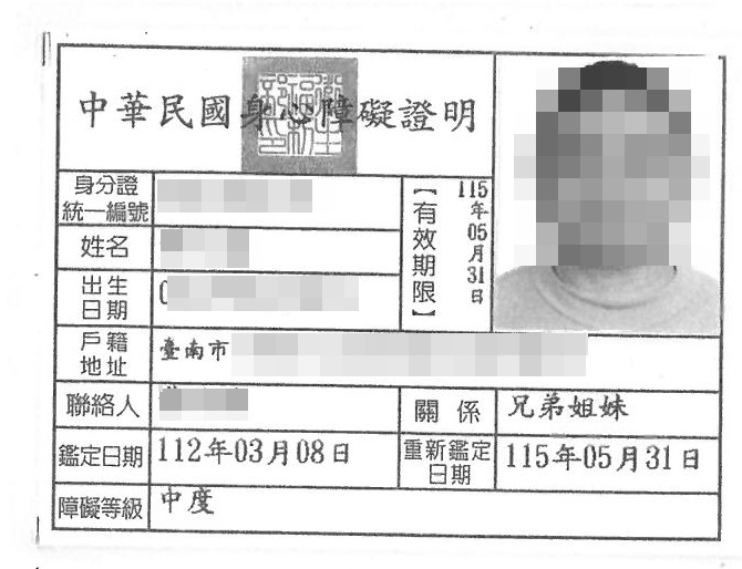 爸爸因早期腰椎滑脫,手術沒有成功更傷到神經,導致左腿無力,後領有中度身心障礙證明,無法從事穩定工作,奶奶年事已高,一家人平時仰賴社會補助維生。