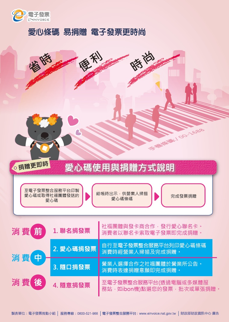 持有iCash或悠遊卡至全省7-11ibon消費,可將該筆電子發票捐贈給台灣愛希望兒童關懷發展協會。