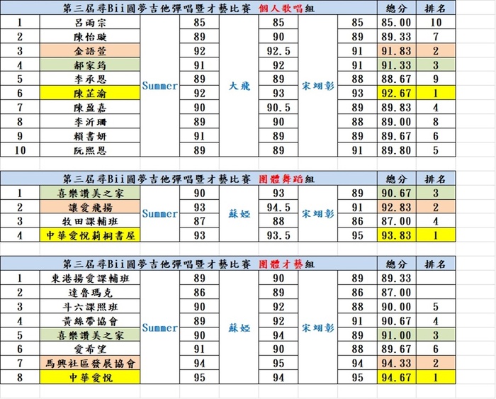 🎸 團體才藝組 第1名~第3名