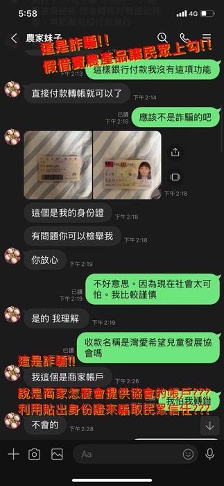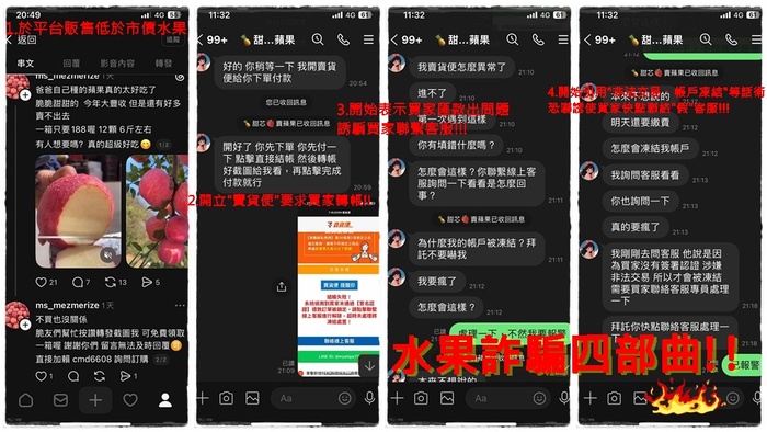 詐騙集團利用網路上就查的到的公益團體勸募帳號誘導民眾小額匯款(購買水果),後續再要求加進line群或私訊,利用各種話術進行詐騙,非常可惡 !!
