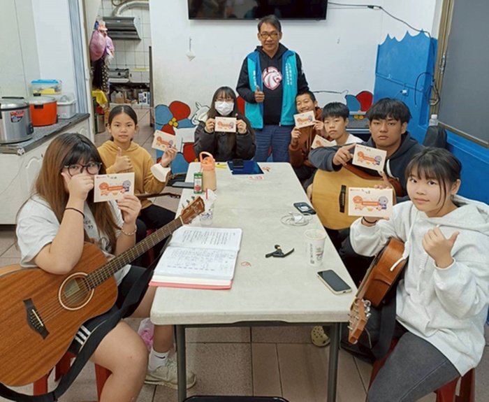 本次受贈孩童為圓夢吉他班學員,讓吉他學員們在寒假期間透過物資券採購需要的日常物資